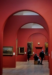 Light enters Soane’s galleries at Dulwich from above via overhead sky lights. These were placed in such a way that they illuminate the hanging spaces without allowing direct sunlight to hit the paintings on the walls. This system has since been adopted in many other art galleries. Newer rooms, lit entirely by artificial lighting, are used for temporary exhibitions including that of the woodcuts of the American artist Helen Frankenthaler (1928-2011), which we saw on our latest visit. Compared with Soane’s galleries, these newer ones are far less impressive, and despite the modern lighting they feel claustrophobic and rather gloomy.