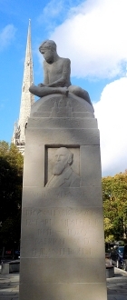 What I have called the ‘piazza’ opens out onto Bayswater Road. In the middle of it, there is a monument topped with the weather worn sculpture of a seated child, probably male. The sculpture sits above a bas-relief depicting the western façade and the dome of London’s St Paul’s Cathedral. Below, on the south side of the pedestal, there is a bas-relief, depicting the face of a man with a bushy moustache and a long luxuriant beard. Weather and/or pollution has worn away details from his portrait. At first sight, I thought that it was a representation of George Bernard Shaw as an old man, but it is not. It is, according to the almost undecipherable inscription beneath it, the face of Reginald Brabazon, the 12th Earl of Meath, who lived from 1841 to 1929. The words on the plinth include that he was “a patriot and a philanthropist”.