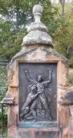 The Gloucester Gate bridge with its decorative parapet and elaborate cast-iron lampstands also includes two interesting memorials. One of these relates to the fact that the bridge was constructed by the St Pancras Vestry, the then local authority governing the area (www.andrewwhitehead.net/blog/the-most-pointless-bridge-in-london). There is a bronze bas-relief depicting the martyrdom of St Pancras. It was a gift of William Thornton and sculpted by the Italian Ceccardo Egidio Fucigna (c1836-1884), who died in London. St Pancras (c289-303/4) was born a Roman citizen. He converted to Christianity and was beheaded for his beliefs when he was 14 years old (https://en.wikipedia.org/wiki/Pancras_of_Rome). The bronze relief on Gloucester Gate bridge shows a young man being mauled by an animal, possibly a lion. Why this motif was chosen when the saint was beheaded puzzles me.