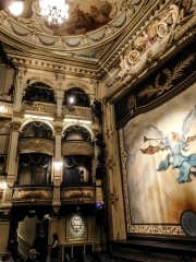 “… the former ‘Coronet Cinema’. This was designed as a theatre by WGR Sprague (1863-1933) who designed many of London’s theatres. It opened in 1908. By 1923, the Coronet had become a cinema, and remained so for many years. Apart from the screen, the fittings inside the auditorium were those of an unmodernised Edwardian theatre. Until smoking was banned in all public places, the Coronet was one of the last cinemas in London which permitted smoking (but only in the balcony seating). Between 2004 and 2014, the Coronet doubled up as both a branch of the Kensington Temple Church and, also, as a cinema. And, in 2015 the Coronet reverted to being used as a theatre, now called ‘The Print Room’. This sensitively restored theatre puts on interesting plays, which are well-produced. The bar, which is located beneath the stage in what was once the stalls area of the cinema, is worth visiting to see its ever changing, tastefully quirky décor. In 2020, the theatre was redecorated and a statue by the British sculptor Gavin Turk (born 1967) has been placed upon the dome above the building’s main entrance. The new artwork replaces one that was removed many decades ago.”