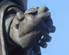 GRIPPING A HEART with the fingers of his left hand and his right hand on his chest, he stands in knee breeches, motionless on a plinth and staring out to sea. This bronze figure is a statue of the great scientist and first to give a scientific description of the way blood circulates through the heart and blood vessels, William Harvey (1578-1657), who was born in Folkestone, Kent, where his sculptural depiction stands. The commemorative artwork was created by the sculptor Albert Bruce-Joy (1842-1924) and made in 1881.