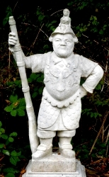 FROM A DISTANCE, the small stone statue in Folkestone’s Kingsnorth Gardens looked like an oriental character, maybe a Hindu god or a Chinese warrior. Getting near to it, you can see that it depicts a small man in armour. The sculpture’s left hand rests on his waist and he holds a stout staff in his right. On the top of his hat or helmet, there perches a female figure, which on further examination proves to be a sphinx. And what fascinated me most was seeing that his breastplate has a double-headed eagle in bas-relief. This curious statue is supposed to be a depiction of Sir Jeffrey Hudson (1619 – c1682).