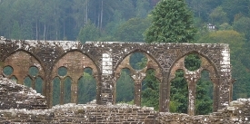We drove along the beautiful Wye Valley and stopped at the attractive ruins of the former Cistercian Tintern Abbey (Abaty Tyndyrn in Welsh), the first ever Cistercian foundation in Wales. At the ticket office, I expressed my joy at being abroad after so many months, and the cashier said to me in a gently Welsh accent:
