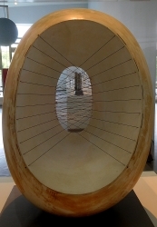 As with other abstract artists, such as Picasso, Hepworth began learning the basics of figurative representation. Her earliest carvings and drawings were created superbly competently but give no hint of which directions her creative output was soon to follow. Had she not developed any further, she would have been regarded as a skilled, if not too exciting, sculptor. However, Hepworth soon became involved artistically, and in one case maritally, with leading artists of the twentieth century. Contact with them and their ideas can be detected in some of the works she created as she moved from purely representational to highly abstract. It was particularly interesting to see a small carving with a hole in it, the first of her many works to have holes in them. The idea of the holes is to allow light to flow through her sculptures. It was not only other artists who inspired Hepworth’s creation but also the forces of nature, which unconsciously sculpt rocks, trees, and other natural features in the landscape.