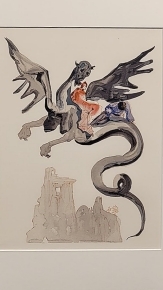 In 1950, the Italian government commissioned Dali to produce a set of images to illustrate the “Divine Comedy”, which was composed by Dante Aligheri (c1265-1321) between about 1308 and 1321 AD. Dante’s work is one of the treasures of Italian literature, and the commissioning of Dali, who was not an Italian, was so controversial that it was debated in the Italian Parliament, after which Dali’s contract was cancelled. As the gallery’s website notes: