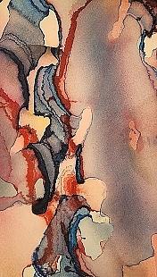 THE ARTIST BARBARA Nicholls (born 1963) invited us to the opening of her solo show at the Patrick Heide Contemporary Art gallery in Church Street, near Edgware Road. All her creations on display are watercolours on paper. Each of them resembles what looks like a natural phenomenon, but an imagined one. Although her pictures do not depict actual natural occurrences, each one of them is a result of the artist exploiting the unpredictability of the behaviour of the materials she is using at the same time as exerting some control over how they behave. To give some idea of what I am trying to say, here is something written in the notes issued by the gallery: