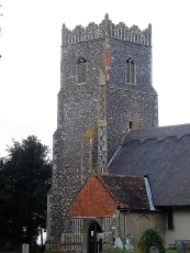 St Botolph, who died in about 680, is believed to have brought Christianity to Iken in about 654. He is the patron saint of boundaries, and, because of this, also of trade and travel. The present church dedicated to him is curious because its nave has a thatched roof. It was preceded by a minster built by Botolph but destroyed by the Danes in the 9th century. In 870, a Saxon timber church was constructed. This has also gone. It was replaced by a stone edifice, the beginning of what we can see today.