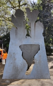 It was restored in 2022, but now (April 2025), it is covered with graffiti and dirt including bird droppings. It needs to be cleaned up. As a sculpture, it appeals to me, but I do not feel that it enhances the locality where it is placed. Although it is large, it looks a bit lost where it is.