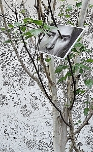 The show at the Serpentine is of artworks by the Italian artist Giuseppe Penone. I have already written a bit about him (https://adam-yamey-writes.com/2025/04/15/boulders-lodged-in-trees-at-a-park-in-london/). I did this after seeing those of his works that are on display near the outside of the Serpentine Gallery. I have now seen what is on display within the gallery, and was pleasantly surprised. Penone is fascinated by the intricate relationships between humans and nature, and this is what inspires his artworks. Many of the artefacts (paintings, installations, and sculptures) on display relate to trees and their leaves. The walls of the central hall of the Serpentine Gallery are lined with containers that hold thousands of dead laurel leaves. Another exhibit consists of semi-abstract sculptures that resemble human forms, and these are entwined with living plants growing out of large flower pots. Other works are formed from pieces of wood and twigs. One particularly effective work consisted of living branches with leaves and twigs. One of the twigs has been forced through a hole cut in a photograph of a man’s face in such a way that the twig seems to have grown from within the centre of the eye. I like this piece because it encapsulates what Penone does: he sees nature through his eyes and is inspired by what he sees.