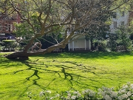 Even when the sun is not shining, this leaning tree in London’s Kensington Square is interesting enough from the visual point of view. It is amazing how much more entrancing and intriguing the scene becomes when the sun causes the tree to cast a shadow.
