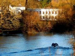 Looking upstream and through the trees on Monkey Island, you can catch a glimpse of part of the Monkey Island Estate, currently a grand hotel built in and around a house with a fascinating history (www.monkeyislandestate.co.uk/pages/our-story.html). Many people assume that Monkey Island is so-called because of the paintings of monkeys in one of the buildings on the island, but this is probably erroneous. The name is most likely derived from the island’s earlier name ‘Monk’s Eyot’. The monks lived in Amersden Bank near Bray Lock on the Buckinghamshire side of the Thames. Their monastery, a cell of Merton Priory, was in existence by 1187, but was dissolved when Henry VIII put an end to such establishments.