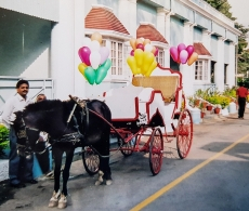 Christmas is celebrated in style at the Club. Strings of tiny lightbulbs are draped all over the establishment’s buildings and the many lovely trees in the Club’s extensive grounds. Shortly before Christmas, there is an outdoor evening carol singing concert that ends with the lighting of a huge bonfire. There is also a lively Christmas party for the members’ children that culminates with the arrival of Father Christmas on a horse-drawn carriage. I always feel a bit sorry for him as he must dress not only in a bushy white beard but also in clothing that is far too warm for the December temperatures in Bangalore, which can be in the high twenties Celsius. On Christmas Day, members and their families, who are not vegetarian as many are in India, queue up for servings of roast Turkey and a wealth of other foods available at a luncheon buffet. There is plenty available for those who prefer not to eat meat. Well, we will be missing all of this in 2020, and a lot more.