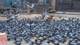 of food for pigeons (as well as street dogs and other animals) is commonly