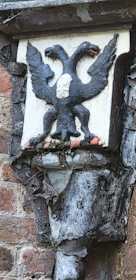 In England, aristocratic families such as the Killigrews and the Godolphins in Cornwall have incorporated it in their coats-of-arms. Today, we visited Rufford Old Hall in Lancashire. It was once the seat of the Hesketh family. And their original coat-of-arms included the DHE. This two headed bird can be seen in many places on the building.