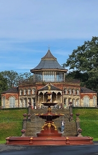 During our second visit to Wigan, we took a stroll in the town’s Mesnes Park. This beautifully maintained park was laid out in 1878 on glebe land (terrain set aside to provide income and support for a parish priest). Apart from a lovely pond, lawns, and carefully tended flower beds, the park contains several interesting features. One of these is the octagonal pavilion built in 1880. Now containing a café, it stants on a raised mound, and can be approached by elegant stone staircases. In fron of its main entrance, there is a statue of a soldier, which is part of a memorial to those men of Wigan who fought in the 2nd Anglo-Boer war (1899-1902). And a few steps down from this, there is the elegant cast-iron Coalbrookdale Fountain. This is a replica of one which stood in the park until 1921. Near the pavilion, there is a 10-sided Victorian bandstand.