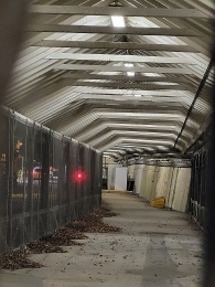 The other entrance, which has been closed for several decades, was beneath the bridge that carries the railway tracks over Finchley Road. The canopy at this entrance is still standing. Passengers used to walk beneath this canopy and then along a long walkway covered by a wooden canopy supported by timber pillars with simply ornamented capitals. . This passageway , which still exists, led to a ticket hall. Neither the ticket hall nor the passageway are accessible to the public.