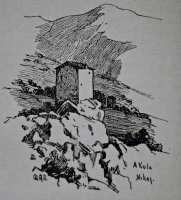 The drawing above, although very competent must have been drawn at speed, as the accompanying text, which I have copied, suggests. It shows a couple of kulle or fortified tower residences that are not only typical of the lands inhabited by Albanians but can also be found in the Mani Peninsular that projects from the southern Peloponnese (see my picture below).