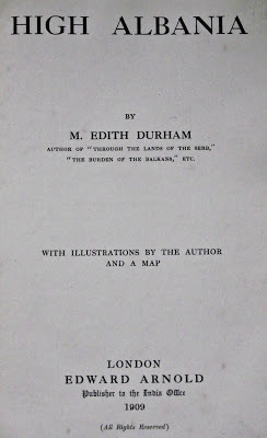 Until I read Gowing's book, and then looked up Durham on Wikipedia, I had not realised that Miss Durham had been trained as an artist and illustrator long before she embarked on her travels to the southern Balkans. Long ago, I acquired an early edition of Durham's book entitled High Albania. It is a brilliantly written account of her travels in the rugged mountains of northern Albania and neighbouring Kosovo and of the people whom she met there.