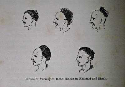 Of this picture, Miss Durham wrote, "To study head tufts one must go to church festivals. Only then are a number seen uncovered."