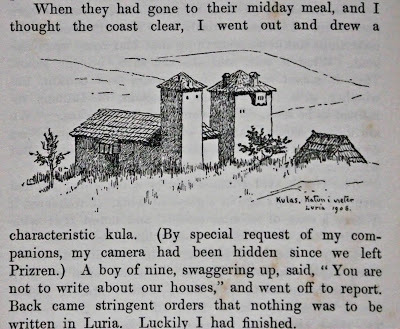 I took a fresh look at my copy of High Albania, and realised that its author was indeed a fine illustrator. The rest of this article is dedicated to presenting a few examples of Durham's hand-drawn illustrations in her book. Her attention to detail was marvellous, as was her ability to capture the 'atmosphere' of a place. Despite the presence of her own photographs in her book, it is the drawings that help to make it really special.