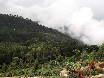 The other end of Coaker's walk is near the Doordarshan Television Tower, which may be reached after a steep climb up a forested slope. Here it is, partially enveloped by a passing cloud: