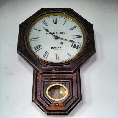 We noticed a wall-mounted clock inside the church. It looked quite old, and had been supplied by a company in Madras, but had been made in the USA: