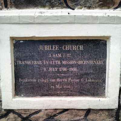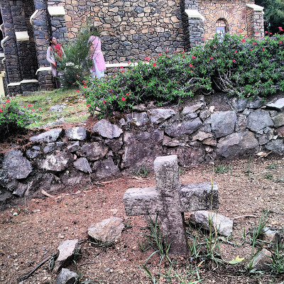 Even during the coolest time of the year, the temperature in the plains in the south of India can exceed 30 degrees Celsius. In summer, the sky's the limit! As the summer temperature soared in the plains during the 19th century, Europeans sought refuge from the heat in so-called 'hill-stations'. These included members of the American Madura Mission, who decided to set up their own hill-station in Kodaikanal. The Americans built their first church (illustrated above: picture from a 1909 guidebook) there in 1857. It was used for services until 1896 when a new church was built . By 1908, the original church had been demolished. Today, all that remains of this is an obelisk in the midst of the overgrown American Cemetery: