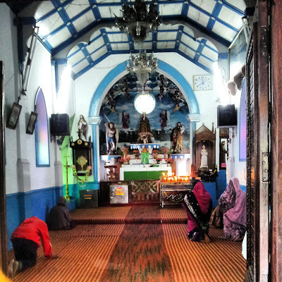 The Sacred Heart was not the first Catholic church in the town. That honour goes to the Church of Our Lady of La Salette, which was built in 1866. This fine edifice stands high above the town close to the Doordarshan television tower and Hindustan Unilever's mercury thermometer factory, and also a compound whose rusting gates proclaim that they give access to the 'Oceanic Shrimping Company'.