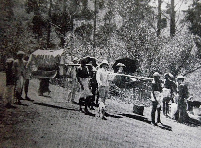 This article deals with our journey from Bangalore to Kodaikanal by road in July 2013. We did not travel in a chair carried by local Indians as is illustrated in the picture above, nor did we travel in the superior successor to this mode of transport illustrated below.