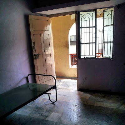 Soon after we had left Hosur, I noticed that Hanumaya was getting sleepy. The car was drifting - at high speed - from one side of the carriage way to the other. Hanumaya, who had picked us up at 3.30 am, must have left his home an hour earlier. I suggested that we stop at a roadside café, which was part of an hotel, in order that he could take a nap. While he was fast asleep, we had coffee, but before that we needed the toilet. The proprietor of the café unlocked one of the rooms of the hotel (see below), and told us to use its en-suite bathroom.