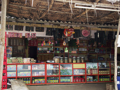 We continued our journey after Hanumay had slept for 45 minutes. Every now and then, he stopped for a cup of tea. Here is a shop at one of these stops. Notice that its owner has placed mask-like rakshasas to ward off the evil eye.