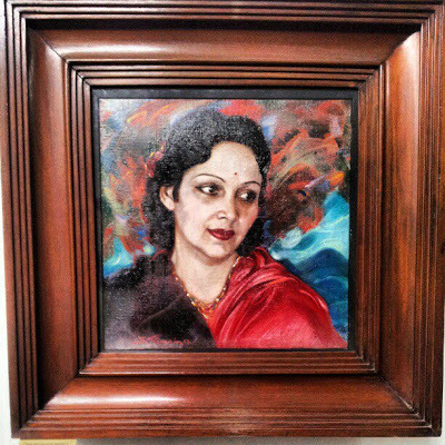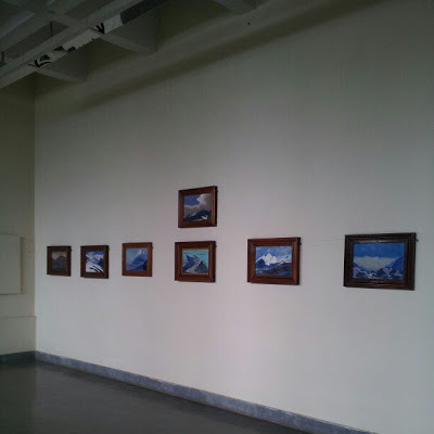 The permanent exhibition of artworks is housed in rooms on the labyrinthine first floor. The first of these rooms that one reaches after ascending the staircase contains the series of pictures of the Himalayas to which I have already referred. Nicholas Roerich, who was already an accomplished painter in Russia, his native land, had already left Russia when he began traveling in Asia in the mid 1920s. By 1928, he and his family had settled in India where he lived out the rest of his life. His son Svetoslav (1904-1993) was also a prolfic painter. A couple of galleries in the CP are dedicated to displaying his highly colourful works, which in my opinion are not as fine as his father's but good nevertheless. He married the Indian film star Devika Rani, and painted her portrait frequently. He died in Bangalore.