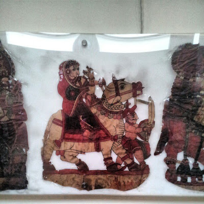 One room contains a collection of beautiful Karnatakan leather puppets. They resemble other oriental marionettes such as those used in the Javanese shadow plays. However, they look fragile and are badly displayed, often being attached to their backing displays by ageing pieces of adhesive tape.