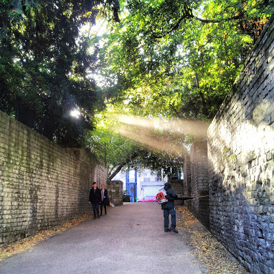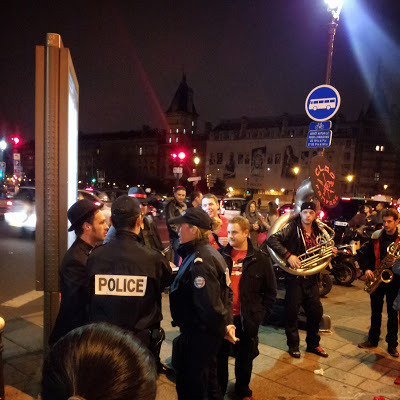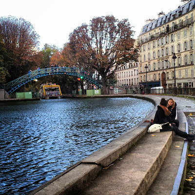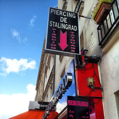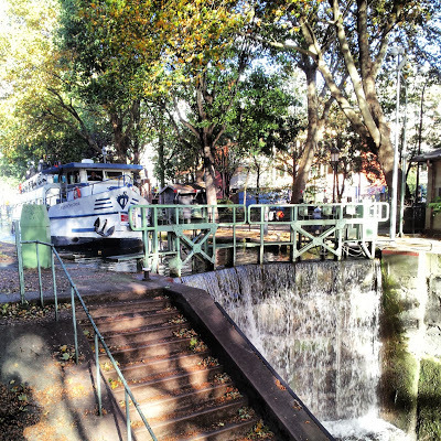 After looking at the Bassin, we began walking alongside the Canal St Martin that connects north-east Paris with the Seine, which it enters near to the Arsénale. At first the canal was lined by 'edgy' looking establishments, but nearer the centre of the city the canal becomes increasingly chic.