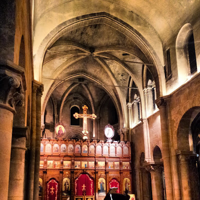Before entering our hotel, we took a peek inside the nearby church of St Julien le Pauvre. We were able to enter it despite it being after 10 pm because a concert that had been held inside it had just ended. The church is now used by a Melkite Greek Catholic congregation. See below: