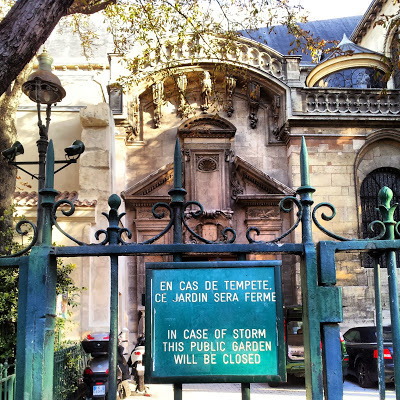 A sign next to this old palace informs that the brain of King James II of England, who died in Paris in 1701, is stored in the chapel. He came to France when he refused to give up Roman Catholicism. We tried to enter the building, but were told that tourists need to make a prior appointment to do so. In general, it used to be the tradition in France that the corpses of royalty were dismembered, and the various organs, such as the heart and brain, would be interred in different locations.