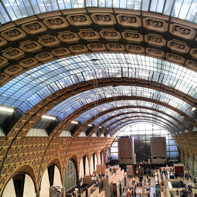 We arrived at the Musée d'Orsay just before 10 am, hoping to avoid having to join a queue, but found that a long one had already formed. The museum is housed in the shell of what used to be a railway station.