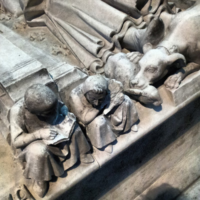 The interior of the gothic basilica is a complete contrast to that of Notre Dame. The nave was tall, light, airy, and uplifting. The apse, the north transept, and the crypt of the Basilica form the final resting places of many of France's royalty. At some point during the early 19th century (around about 1817), many royal tombs were relocated from places all over France and placed in the Basilica at St Denis. For an immoderate entry fee, we were allowed to look at this splendidly laid out collection of graves and funerary sculpture. A black marble slab in the crypt marks the resting place of Marie Antoinette, which lies next to that of her husband Louis XVI. A solitary fresh bouquet lay on her stone.