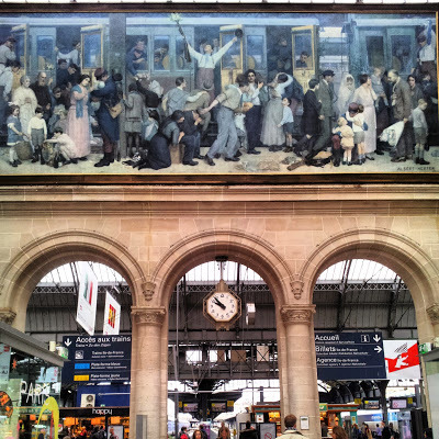 We took a metro train to the Gare de l'Est. Above the entrance to the platforms there is a painting by Albert Hester, done in 1923, showing French soldiers setting off to war: