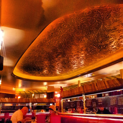 We waited there for the arrival of my cousin J-B, who has attended workshops at this famous establishment. Eventually, he appeared, and we accompanied him to the nearby Café Panis, which is an example of the nicest kind of traditional Parisian café. We chatted and enjoyed a supper together. After eating, we accompanied J-B to his RER station, and then took a walk around the lively part of the Quartier Latin near to our hotel.