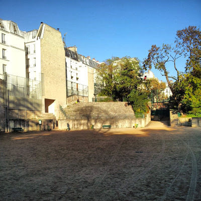 This morning we began by travelling south towards the Place d'Italie. When our bus reached the Rue Monge, we disembarked to visit the Arenes de Lutèce. Surrounded by apartment blocks, this site contains the ruins of a Roman arena discovered in the 1870s.