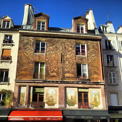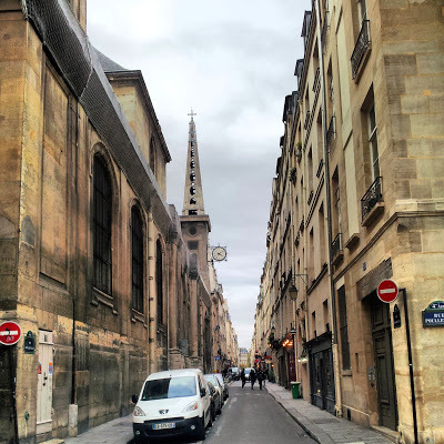 After visiting this little-known archaeological site, which I first learned about from Ian Nairn' quirky guide book to Paris, Nairn's Paris (first publ. 1968), we headed for another of Nairn's recommendations, the much visited Rue Mouffetard.
