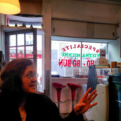 Belleville is full of Chinese shops and restaurants. Amongst these we found and entered a modest-looking tiny Vietnamese eatery. We ordered three dishes that were prepared in the tiny kitchen in this establishment. We enjoye some of the best Vietnamese food that we have ever eaten.