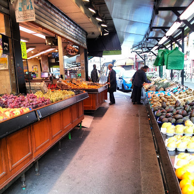 We walked up the steep Rue de Belleville, occasionally passing through vegetable shops that extended across the pavement and onto the roadway.