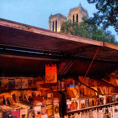 And then we continued our pleasant stroll along the canal. Every now and then we encountered small parks along the water's edge. Often these were alongside the double-locks. Near the Place de la République, the canal disappears into a tunnel. We took a bus from the Place to Place St Michel. From there we walked to the famous bookshop called 'Shakespeare & Co.' (see: HERE for more detail), which was just around the corner from our hotel.