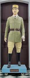On the last day of January, we passed the doorway yet again and this time it was open. Through the doorway I saw what looked like a life-sized statue of General Charles de Gaulle. We crossed the road and entered the building. In the hallway, the large statue, which stands on a plinth with small white plastic wheels, is labelled “Charles de Gaulle”. High above his head, there is a framed photograph of French President Emmanuel Macron. His photograph was not the only one. There were others depicting several past Presidents of France, including: Mitterand, D’Estaing, Sarkozy, and Chirac.