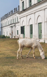 This white horse, grazing outside the Nizamat Imambara, which faces the Hazarduari Palace in Murshidabad, is only required to work during the few days of the Shia Muslim festival of Muharram.