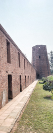Near Murshidabad, there are two famous mosques constructed not with stone or concrete, but with bricks. One of these, the Katra mosque, was constructed entirely with bricks between 1723 and 1724. This huge edifice was built not only as a mosque but also as a caravanserai. It is one of the largest caravanserais in the Indian Subcontinent. The rooms of the caravanserai are arranged in a square that surrounds the mosque rather like cloisters in a monastery. These small rooms also served as workplaces and bedrooms for students studying the Koran and other Islamic texts. Thus, the Katra was a complex consisting of a mosque, a caravanserai, and a madrasa. At each of its four corners, there were tall brick towers. Only two of these remain. The tomb of Nawab Murshid Quli Khan(1660-1727) is located under the staircase leading to the main entrance of the building. Protected by the Archaeological Survey of India, the remains of the Katra complex are well conserved. This is not the case for another brick mosque nearby: the Fauti Masjid.