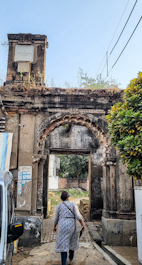 Not marked on Google maps, but mentioned in a guidebook to Murshidabad (in West Bengal), this remnant of a palace is extremely difficult to find. Our toh-toh (electric autorickshaw) driver asked many locals for directions. To my surprise, all knew about the small remains of a former palace, once a home of Maharaja Nanda Kumar (1705-1775), a tax collector for the British East India Company [see: https://en.m.wikipedia.org/wiki/Maharaja_Nandakumar ], who fell foul of the Company’s law. The guidebook did not mention this or the fact that he, a friend of Warren Hastings, was hanged by the Company for alleged fraud.