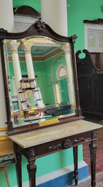 Visitors can explore the interior of Wasif Manzil, which now contains a museum. The exhibits include several wooden framed mirrors, which were imported from Belgium. There are also some glass topped display cases containing dust covered documents, several of which have obsequious addresses to Queen Victoria and some of her royal successors. By the time that Wasif Ali Mirza was living, Indian royalty was very much at the beck and call of the British rulers of India. It was in their interest to appear to be loyal supporters of the Imperial rulers of India.